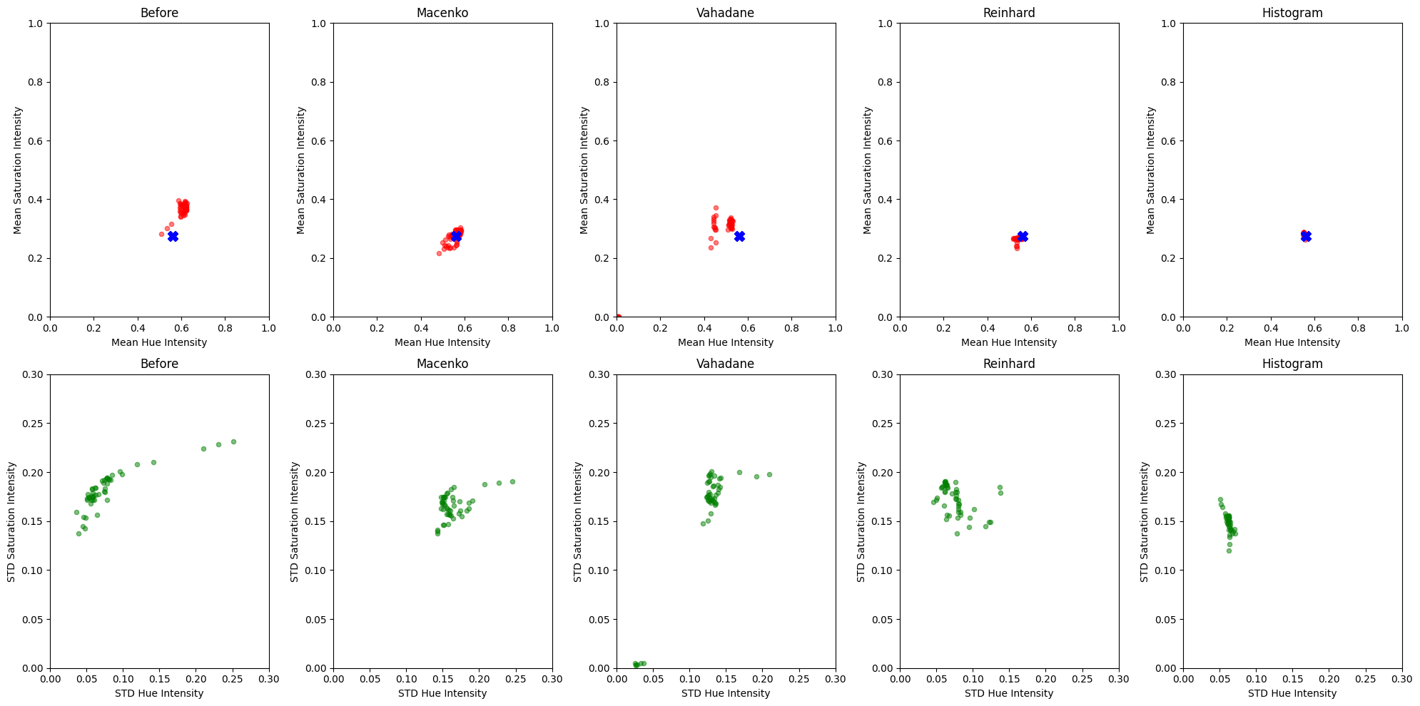 normalized_stats = cn.compute_hue_saturation_stats(list_of_normalized_images)