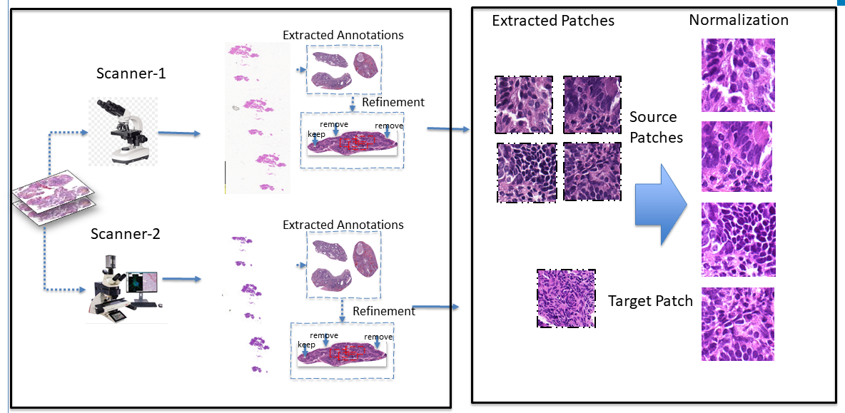The goal is to reduce color variation across slides from different sources or batches, enabling more consistent analysis downstream.